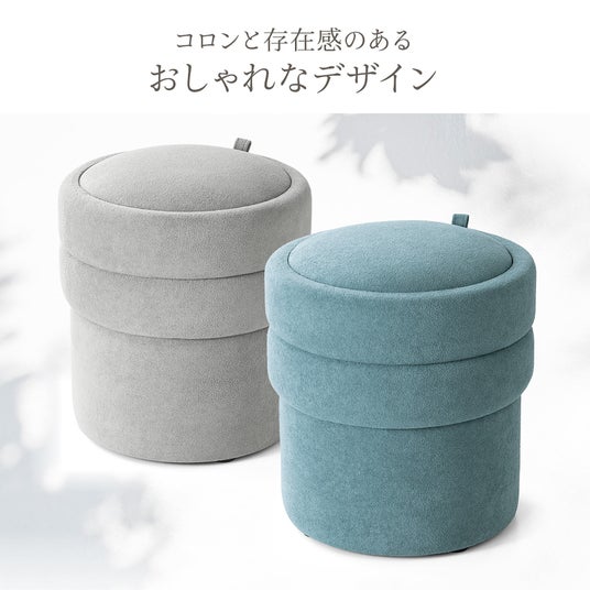 収納スツール オットマン 収納付き 2段収納 丸型 コンパクト玄関椅子 子供部屋椅子 インテリア チェア 収納ボックススツール ラウンド型スツール フタ付き ブルー