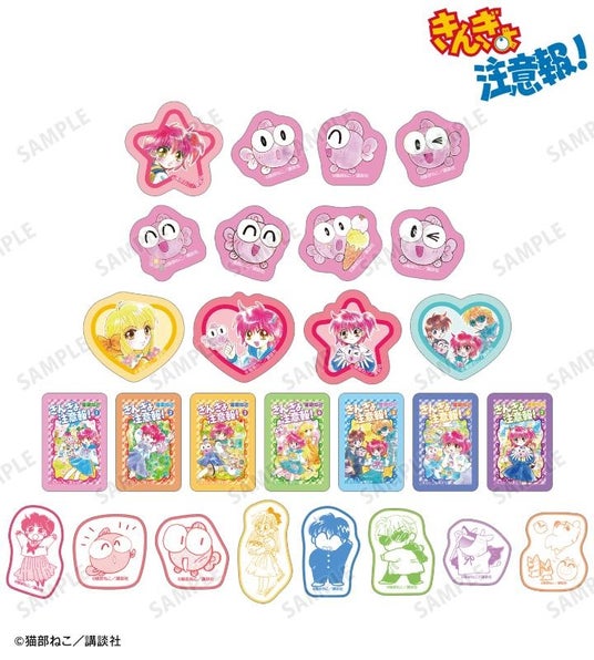 新装版1巻表紙イラスト、新装版2巻表紙イラスト、新装版3巻表紙イラスト、新装版4巻表紙イラスト、新装版5巻表紙イラスト、新装版6巻表紙イラスト、新装版7巻表紙イラスト、わぴこ、ぎょぴちゃん、千歳、秀一、葵、不良牛、ピーコ&ピヨコ&みーこ&いなちゃんの原作コマイラストをフレークシールに仕上げました。