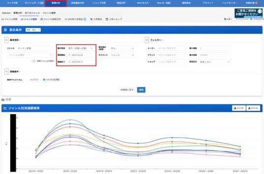 昨今のEC市場においては、販促施策や広告活動の成果をより短期間で評価し、迅速に次の施策へつなげる体制構築が求められています。Nint ECommerceではこれまで、月次単位でECモールの店舗売上シェア、メーカーシェア、ジャンル別売上構成などを把握できる分析機能を提供してまいりました。これらの分析には、Nint独自のAI処理技術を活用しており、膨大なデータの中から高精度かつ実用的な分析結果を提供しています。