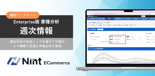 株式会社Nint(本社:東京都新宿区、代表取締役:吉野順子、以下「Nint」)は、ECデータ分析サービス「Nint ECommerce」のEnterprise版において、新機能「Enterprise版業種分析:週次情報」を提供開始いたしました。本機能により、競合状況や自社シェアの変動を週単位で把握できるようになり、施策の即応性・精度の向上を支援します。