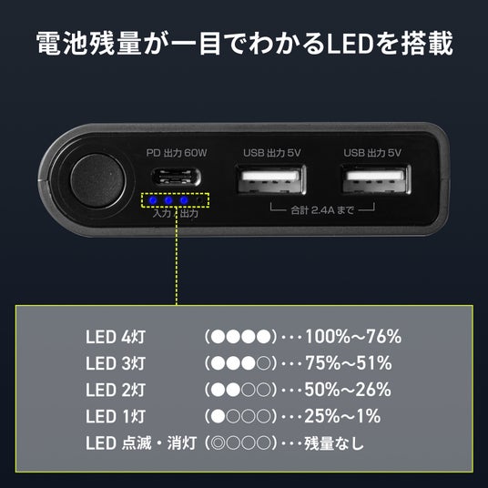 品名:USB PD対応モバイルバッテリー(19800mAh・PD60W)