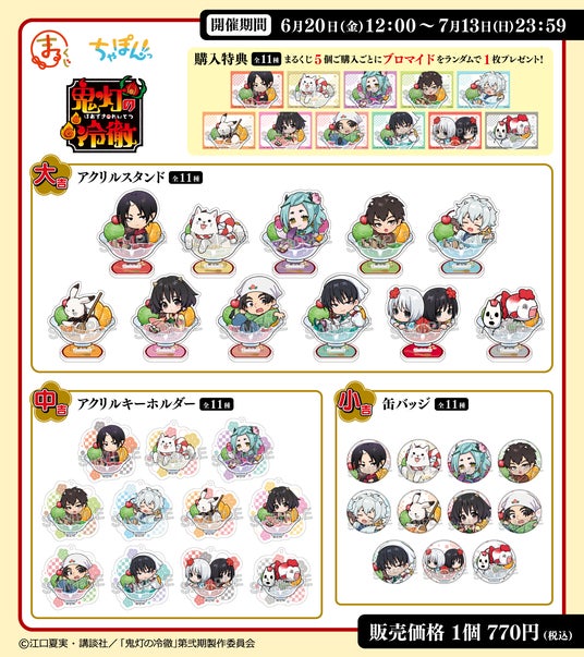 各賞の商品といたしましては、アクリルスタンド、アクリルキーホルダー、缶バッジと、ファンの皆様に喜んでいただけるラインナップとなっております。