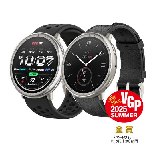 スマートウェアラブル市場をリードする Zepp Health Corporation の独自ブランド「Amazfit」は、2025年6月25日、国内主要アワードで計8製品/サービスが受賞する快挙を達成したことをお知らせいたします。『家電批評』2025年上半期ベストバイでは「Amazfit Bip 6」が1.5万円以下スマートウォッチ部門でベストバイを獲得。さらに、国内最大級のオーディオビジュアルアワード「VGP 2025 Summer」では8製品/サービスが各賞を受賞し、特に「Amazfit T-Rex 3」は前回VGP2025に引き続き2期連続で金賞に輝きました。同製品は6月27日~29日に幕張メッセで開催される『東京アウトドアショー2025』VGPアワードブースにも出展予定です。