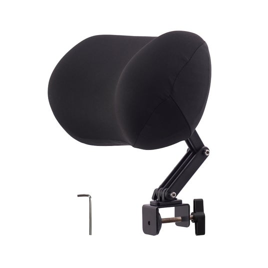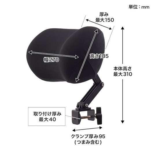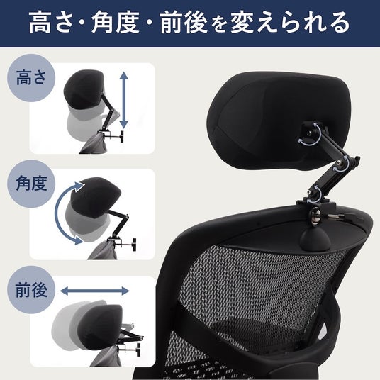 クランプでイスの背もたれに挟むだけの簡単取り付けで、高さ・角度・前後の3軸で細かく位置の調整が可能。