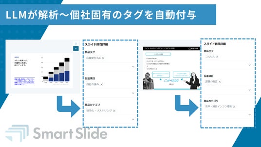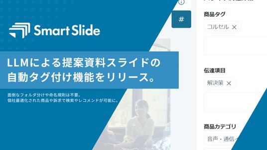 属人的で難しいとされるソリューション営業を、提案資料の仕組み化でカンタンにする「SmartSlide」を展開する株式会社スマートスライド(東京都千代田区、代表取締役社長:白幡 健太郎、以下 「SmartSlide」)は、新機能「公式資料の自動タグ付け機能」をリリースしたことをお知らせします。