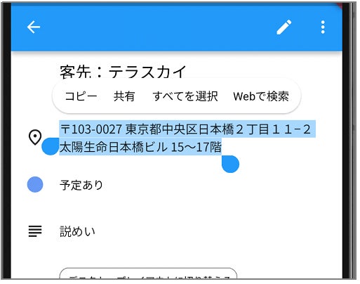 転記ボタンをタップすると、招集した施設の施設名が予定の場所情報に自動で追記されるようになりました。