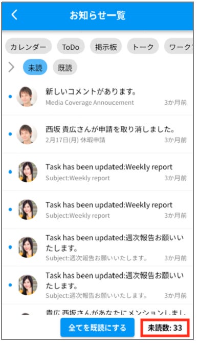 お知らせ一覧で、未読バッジ数が表示されるようになりました。