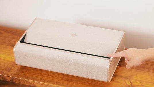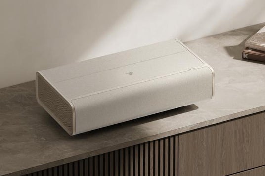 Aladdin Marca Max「Aladdin Marca Max」は、超短焦点プロジェクターの最上位モデルとして、IMAX EnhancedとDolby Visionの両認証を取得した4K対応モデルです。投射比0.177:1の超短焦点設計により、壁からわずか17.8cmで100インチの大画面を実現します。再生素材を用いた洗練された外観と、エンタメやヘルスケアなど多彩なオリジナルコンテンツを搭載し、上質な映像体験を生活空間に自然に取り入れることができます。
