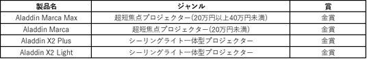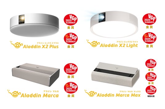 同シリーズの「Aladdin Marca」も、手頃な価格帯でありながら高い完成度を備え、インテリアになじむデザインや使いやすさが評価され、映像音響部会の部門賞で金賞を受賞しています。