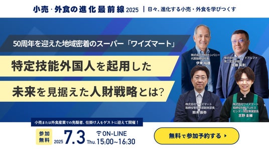 2025年7月3日に特別オンラインイベント『小売・外食の進化最前線2025』を無料開催します。途中参加もOK、また、当日視聴できない場合は1週間のアーカイブ視聴も可能です。以下、プログラムの抜粋になります。