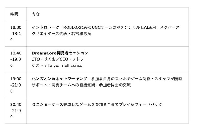「DreamCore Meetupは、AIと人間の創造性が交差する“実験場”です。テキスト一行から生まれるゲームの瞬間を、ぜひその目で確かめてください。」