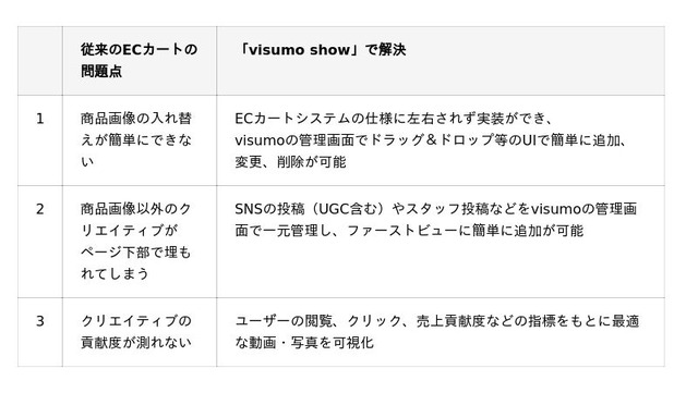 そこでvisumoは、「visumo show」を通じて、売上につながるビジュアルを誰でも簡単にファーストビューへ反映できる環境を提供します。
