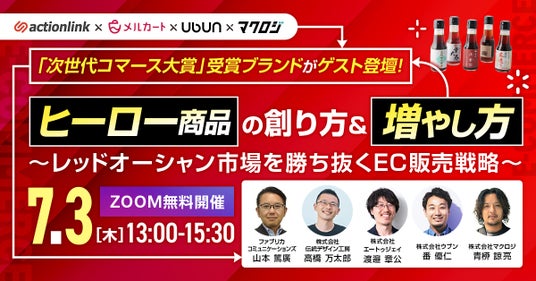 Amazonに特化したマーケティング・テクノロジーによって、ECブランドの成長を実現するグロースパートナー株式会社ウブン(本社:東京都港区、代表取締役社長:森岡健太郎)は、2025年7月3日(木)に開催される「ヒーロー商品の創り方&増やし方~レッドオーシャン市場を勝ち抜くEC販売戦略」に登壇することが決定しました。当社は「『検索データ × 購買データ』で仕掛ける!Amazonでの市場選定と勝ち筋の見つけ方」をテーマに登壇します。ぜひ、ご参加ください。
