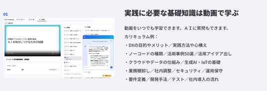 様々な生成AIを活用し、企画や仕様検討、文書作成の効率化はもちろん、AIとともに開発する体験ができます。業務改善におけるAIの使いどころも学べます。