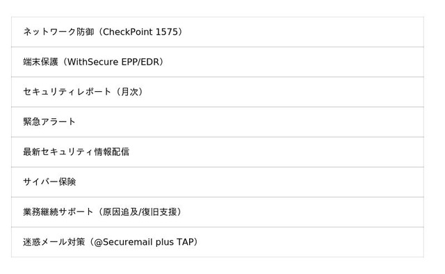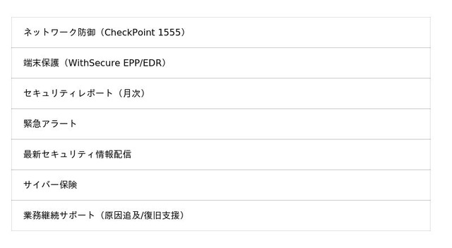 「高額なセキュリティ機器を買い揃える余裕がない」「必要な対策はしたいが、どこまでやるべきか分からない」といった声に応え、専門機器・運用支援・サポート窓口をすべて含めた内容で、月々の負担はリーズナブルに設定しています。