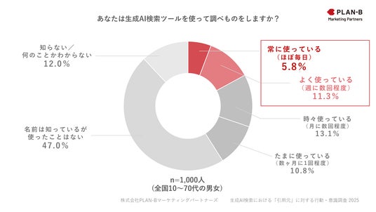 本調査は、「生成AIを使って日常的に(週に数回程度以上)調べものをしている」と回答した人を対象に実施されました。