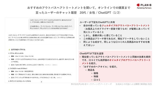 SEOを中心にデジタル領域全般のマーケティング支援を行う株式会社PLAN-Bマーケティングパートナーズ(東京都品川区、代表取締役:鳥居本 真徳)は、生成AIを通じた情報収集が実際の購買にどのように結びついているかを検証するため、「生成AIとの対話による購買行動調査」を実施し、その結果を公開しました。