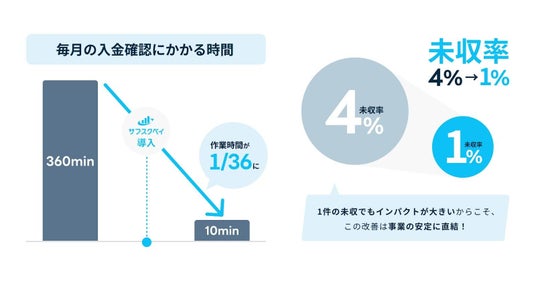 導入後は、決済手段がクレジットカードに対応したことで未収率が約4%から1%以下にまで改善。毎月2~3時間かかっていた入金確認業務も10分程度に短縮されました。また、催促の工数も大幅に減少。選べる決済手段も増え、顧客満足度の向上にも貢献しています。