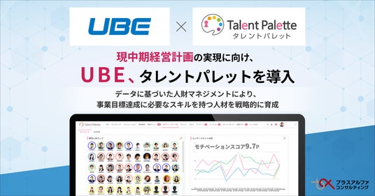 株式会社プラスアルファ・コンサルティング(本社:東京都港区、代表取締役社長:三室克哉、証券コード:4071)は、データに基づく人材活用や人的資本経営の推進、人事業務のDX化などを目的に、多くの大手企業で導入が進んでいるタレントマネジメントシステム「Talent Palette(以下:タレントパレット)」を、UBE株式会社(本社:東京都港区、代表取締役社長:西田祐樹、以下:UBE)に導入いただきましたことをお知らせいたします。