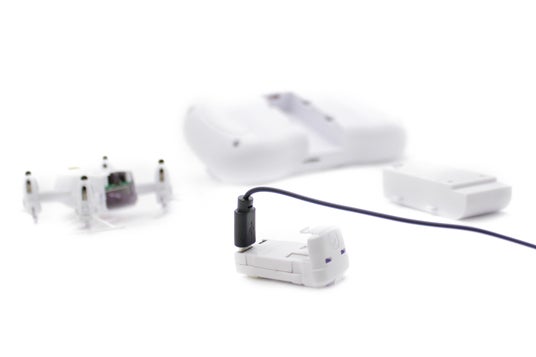 機体にLi-Po 3.7V 300mAh/送信機にLiFe-Po 3.7V 400mAhのバッテリーを搭載。付属するUSB充電ケーブルで約50分の充電で、約6分間のフライトが可能。 (充電用A/C電源アダプターは別売です。)
