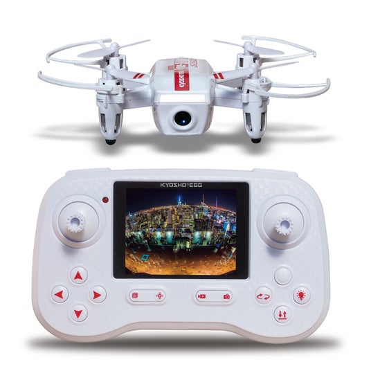 機体前方には30万画素のカメラを搭載し、リアルタイムでの画像/動画撮影を実現。送信機に内蔵された3インチモニターで映像を確認しながら、ワンボタンで撮影/記録/再生が可能。(写真・動画の記録にはmicroSDカード(別売)が必要になります。また、音声の録音はできません。) ※micro SDカードはPCでのフォーマットが必要となります。※2GBのmicro SDカードを推奨しております。