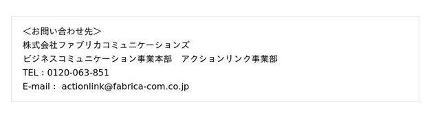 株式会社ファブリカホールディングス(本社:東京都港区、代表取締役社長CEO:谷口政人)の完全子会社、株式会社ファブリカコミュニケーションズ(本社:愛知県名古屋市中区、代表取締役社長CEO:谷口政人、以下「当社」)が提供するEC特化型CRM・MAツール「アクションリンク」が、ソースネクスト株式会社(本社:東京都港区、代表取締役社長:小嶋智彰、以下「ソースネクスト社」)のEC事業に導入されたことをお知らせいたします。