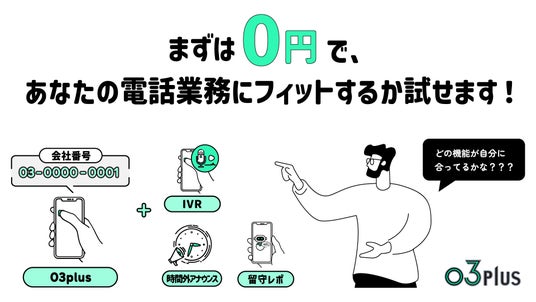 スマホで固定電話が使用できるクラウドPBX「03plus」を提供する株式会社グラントン(本社:東京都渋谷区、代表取締役:井本賀津雄、以下「グラントン」)は、申し込みから毎月25日まで無料で使える「0円スタートプラン」を2025年6月26日より大幅アップデートしました。これまでの基本機能に加えて、IVR(自動音声応答)/時間外アナウンス/留守レポといった人気の有料オプションも含め、実際の業務環境でまるごと無料トライアルできる内容へと拡充しています。