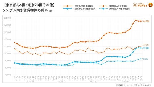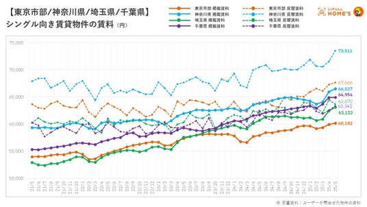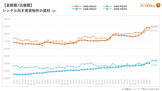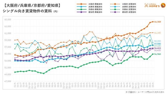 シングル向き・近畿圏で2021年2月の計測開始以降、最高賃料を更新