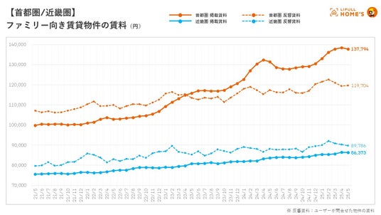 【ファミリー向き】首都圏・近畿圏ともに都心周縁部が賃料上昇を牽引