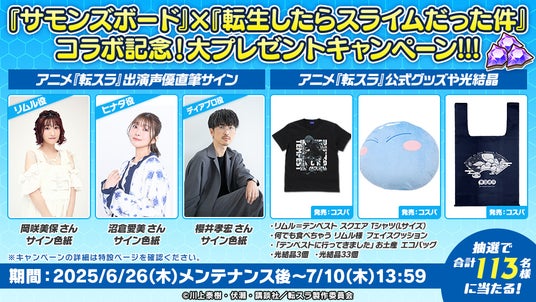 『サモンズボード』は、『転生したらスライムだった件』とのコラボを2025年6月26日(木)より期間限定で実施いたします。