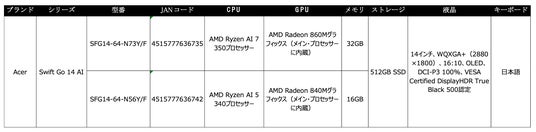 「Swift Go 14 AI」: AMD Ryzen AI 300シリーズ プロセッサー 搭載