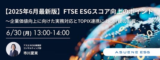 セミナー名:【2025年6月最新版】FTSE ESGスコア向上のポイント ~企業価値向上に向けた実務対応とTOPIX連携による今後の影響