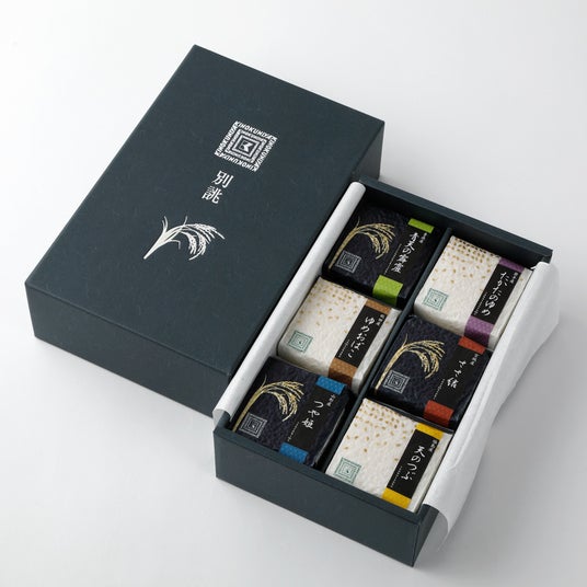 東北6県の銘柄米を少しずつお楽しみいただくセット紀ノ国屋が一つひとつ誂えた、唯一無二の銘柄米のギフト「別誂」。東北6県のお米をキューブ型に真空加工。各銘柄の特長・美味しさを味わえる詰め合わせです。