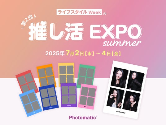 キタムラ・ホールディングス グループのピックハイブ株式会社(本社:東京都新宿区、代表取締役社長 兼 COO:大迫 由典)は、2025年7月2日(水)~7月4日(金)の期間中、東京ビッグサイトで開催される業界最大級の"推し活グッズ"の展示会「推し活 EXPO【夏】」に、体験型コンテンツとして法人レンタル可能なセルフフォトブース「Photomatic」を出展します。