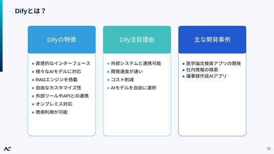 こうした課題を解決するために当社はDifyを活用した法人研修を通じて、非エンジニアでも短期間でAIアプリを構築できる体制づくりを支援します。