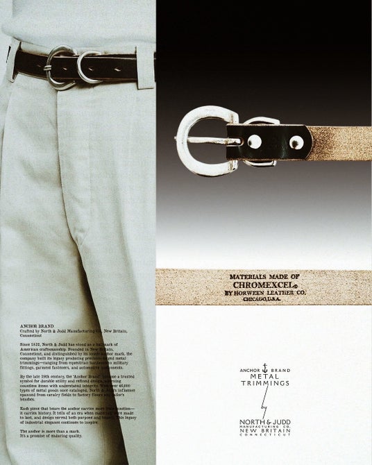 世界一ギャリソンベルトを作ってきたブランド。と言われて、ノースアンドジャッドの名前が浮かぶ人はいるのだろうか。1800年代からベルトを作り続けてきたブランドで、Pennysのレザーアイテムを生産していた背景も持つ。すでに廃業したそのブランドのヴィンテージのバックルが手に入り、ホーウィンのクロムエクセルレザーを合わせてベルトを制作した。質実剛健な男らしさを持ちつつ、どこか柔らかな色気を漂わせるベルトは、夏のリネンやコットンなどの素材とのコントラストを楽しみたい。細めのウォレットチェーンをつけたり、同日発売のヴォルティング・マチルダとホーウィン合わせにしたり。身につけるものが減る夏の、一つの鍵となる商品です。
