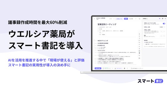 議事録などのあらゆるドキュメント作成に関する作業を自動化・効率化するAI議事録サービス「スマート書記」を運営するエピックベース株式会社(本社:東京都品川区、代表取締役:松田崇義)はドラッグストア業界最大級のウエルシア薬局株式会社(本社:東京都千代田区)において、会議の議事録作成工数を大幅に削減する目的で同サービスが採用されたことをお知らせします。高精度な文字起こしとAI自動要約機能を両立する「スマート書記」は、ウエルシア薬局での社内DXを加速し、意思決定スピードの向上を支援します。