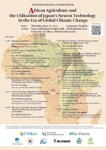 地球沸騰化により多くの被害に直面するアフリカ地域農業の現状を把握し、日本の基礎科学研究成果を応用することにより、これらの諸問題の解決に資する新しい枠組みを考えるためのシンポジウムとして開催します。