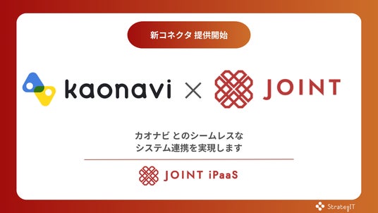 株式会社ストラテジット(本社:東京都港区、代表:加藤 史恵、以下当社)は、SaaSプロダクト間のAPI連携・管理を効率的に行うSaaS連携ソリューション「JOINT iPaaS」において、株式会社カオナビ(本社:東京都渋谷区、代表取締役:佐藤 寛之)が提供する「カオナビ」のコネクタ提供を開始します。