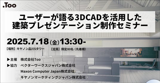 会場となるキヤノン品川Sタワーでは、お施主様への提案力を高める、高画質印刷機器を体験いただけます。設計、プレゼンテーションにVectorworksをさらに活用していきたいという方は、この機会にご参加ください。