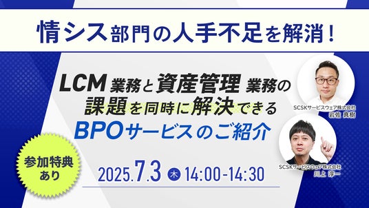 本ウェビナーでは、当社のLCMサービス全体像と事務作業の可視化、改善手法、資産管理運用のポイントを事例とともにご紹介します。