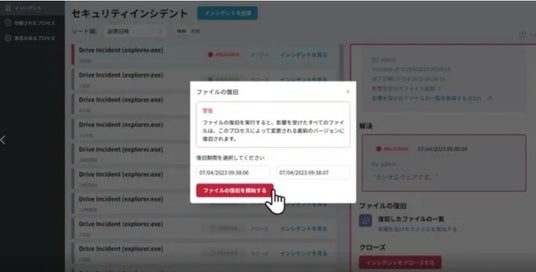 ※ファイルの一括復旧は、インシデント管理画面からボタン一つで自動復旧(イメージ画像)
