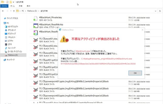 ※Fileforce Driveでのふるまい検知(イメージ画像)