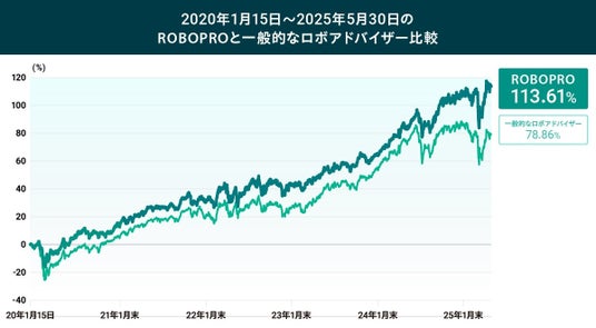 今年1月にサービス開始から5周年を迎えた「ROBOPRO」は、様々な相場局面において、AIによる相場予測を基に臨機応変に対応してきました。今年4月、「ROBOPRO」は相場変動の影響を受けて一時は大きく下落しましたが、「ROBOPRO」のAIは株式に対する積極的な見通しを維持し続け、さらに、臨時リバランスも含めた投資配分の変更により機動的に保有資産の比率を調整した結果、5月12日には最高値を更新することができました。このように「ROBOPRO」は、AIによる将来予測を活用した機動的な投資配分の変更や、相場変動時にも感情に左右されない合理的な判断を行い、リターンの最大化を目指しています。