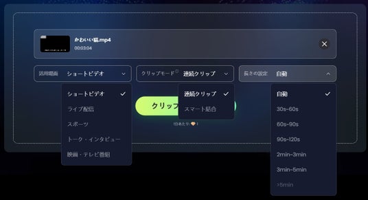 2. オプションの設定を調整(活用場面&クリップモード&ショートビデオの長さ)
