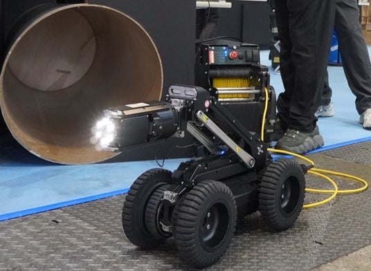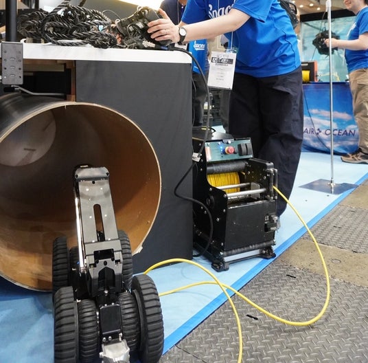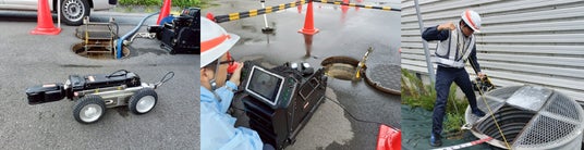 下水管などの管路点検を行うパイプクローラー・水中部の点検を行う水中ドローンを展示