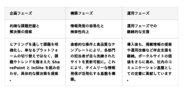 ポータルツールとしては、Microsoft 365 を導入していることから、SharePoint Online(以下、SharePoint )を活用することにしましたが、SharePoint に関するノウハウの不足や、これまでのポータルからの大幅な機能変更が影響し、使い慣れていたユーザーとのコミュニケーションや、各部門の要望の調整にもハードルを感じていました。
