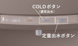 ボタンを押している間だけ出水する通常出水に加え、定量出水ボタン(約200ml自動出水)を搭載しています。お料理やお酒作り等活用シーンに合わせて、自由に出水モードをお選びいただけます。