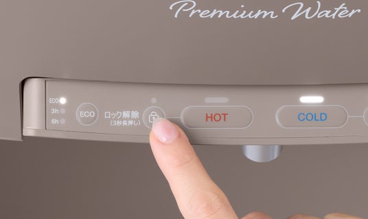 やけどや誤操作を防ぐために3秒間の長押しでロックを解除する温水チャイルドロックを搭載しました。小さなお子さまのいるご家庭でも安心してお使いいただけます。