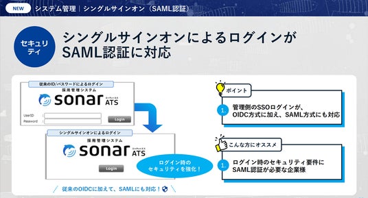 新機能の開発と並行して、既存機能の改善にも継続して取り組んでいます。多様な機能でも直感的に「わかりやすい」「使いやすい」と感じていただけるよう、各種画面の表示や操作性を向上するリニューアルを行いました。また、SSO(シングルサインオン)のSAML認証機能の追加など、採用業務のプラットフォームとして欠かせない、セキュリティ強化にも取り組んでいます。